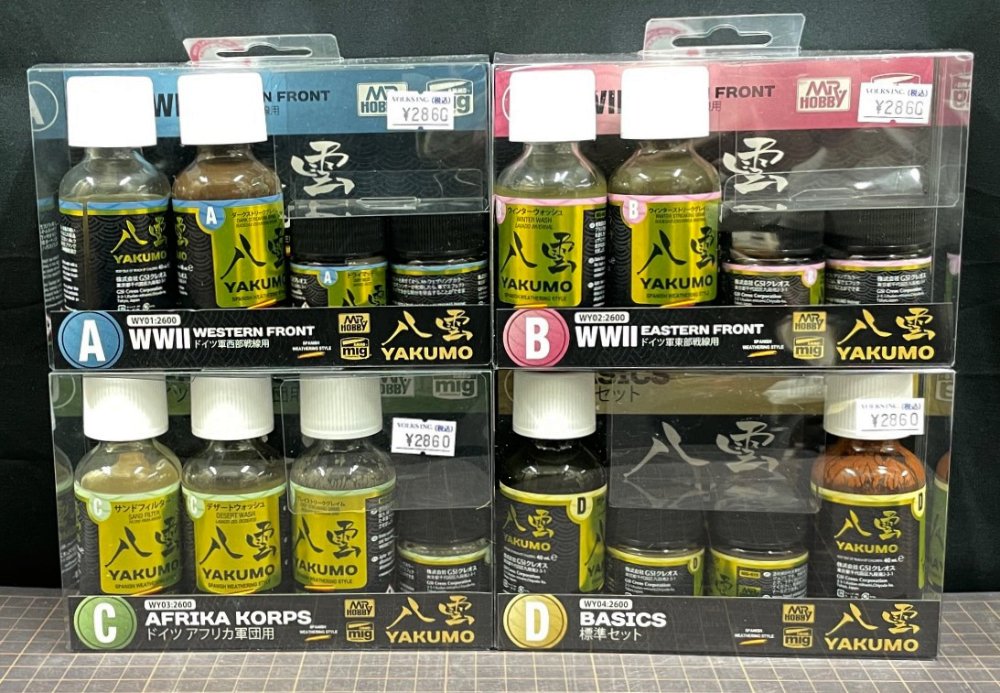 クレオスさんより発売されました、世界的なスケールモデラー、ミグ・ヒメネス氏の監修のもとに開発された、「WWIIドイツ軍車輛」の活動地域ごとに最適なウェザリングカラーセット、それが八雲です!