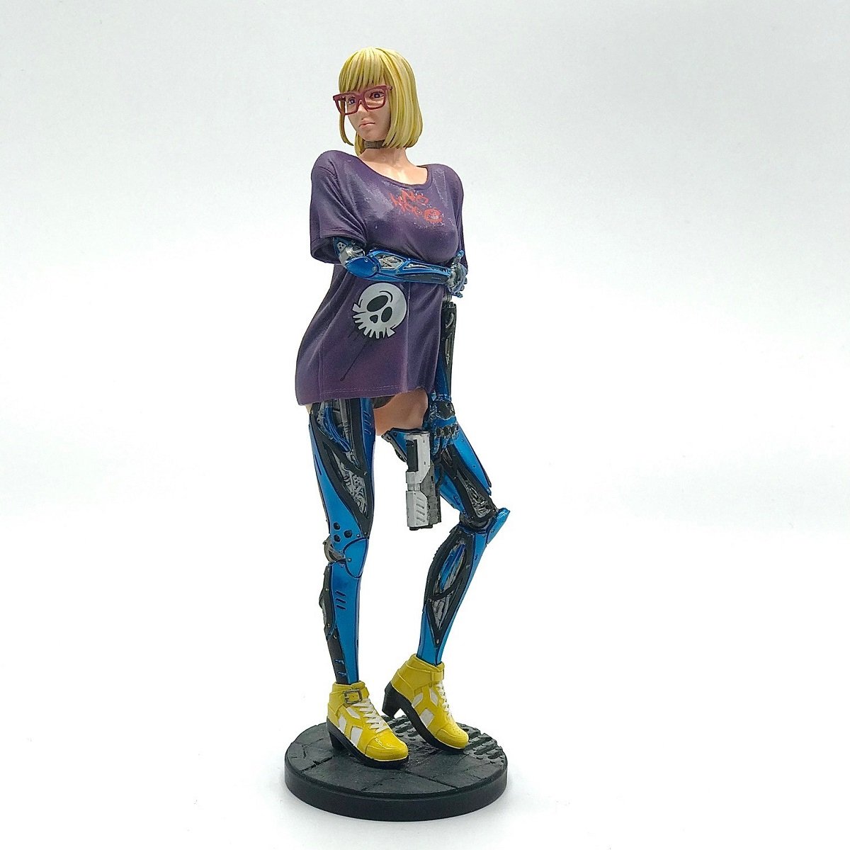 では足元から見ていきましょう!何を隠そう・・・(※って隠しておりませんがっ)とこちらの女の子は体の一部が機械になっているんですっ!何よりそうぅっ!両足がねっ。っと・・・・機械は一見めちゃ冷たくゴツゴツ男っぽいと思ってしまいますがっ!そこは女の子と言うべきが、塗装がきれいなので一つ一つのパーツのメリハリが効いていて素敵っ。また良くシューズにご注目ください。艶感を残すことで、配線・機械部とのマッチングも自然な感じで行え、さらには艶が靴をエナメルっぽく見せることでより機械の体なのに作品をPOPに見せてくれております。