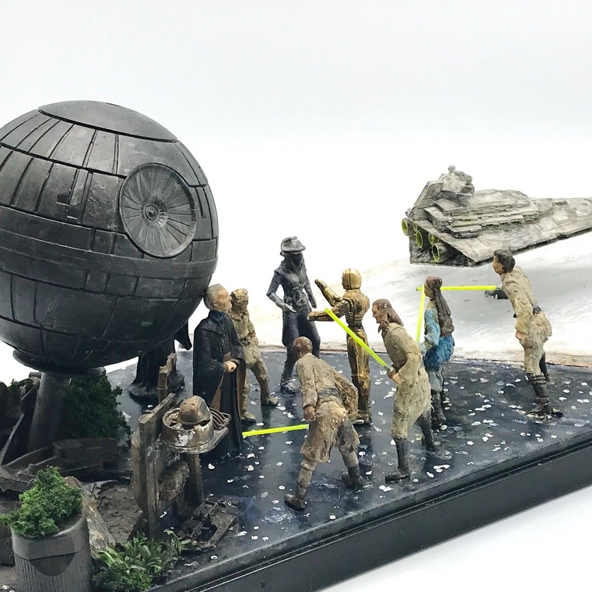 本日最後の作品はいろんなもののミキシングだぁ~!と言うことで、名作と名高い!と言うかもはや誰もが名作と認める映画スターウォーズシリーズよりデス・スターやらスター・デストロイヤーやみんなが大集合してやってまいりました。スターウォーズ作品は現在はBANDAIさんより手ごろで簡単!でもめちゃかっこいいでおなじみのメカコレシリーズで様々な乗り物が出ているだけなく、ヨーダさんのプラモがあったりと見て楽しんで作って楽しんでができるのでいいですよね、またボトルキャップシリーズなどフィギアも実はあったりするので楽しみ無限大ですよね!