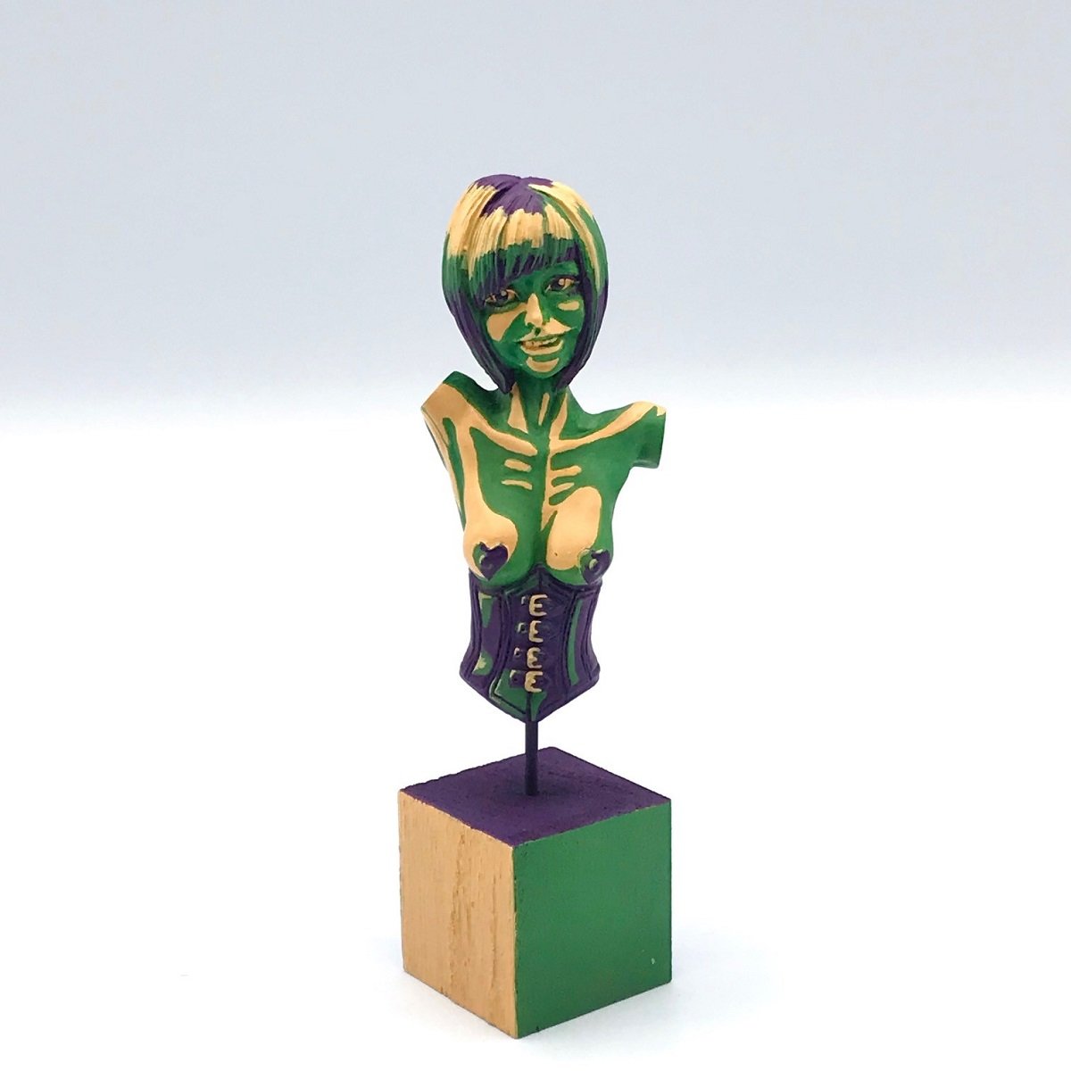 後ろからも見てみましょうか!また凄いポイントとしては何はともあれ3色がそれぞれに基本色:緑 明部:オレンジ 暗部:紫としっかりと役割を果たしているというところも作品のクオリテーを上げている部分と言えるではないだろうか!この一切調色しないことでまるで80年代のパンクロックのポスターのような雰囲気を出しつつも、しっかりと作品の中に光と影を感じることができるのも素敵ですよね!