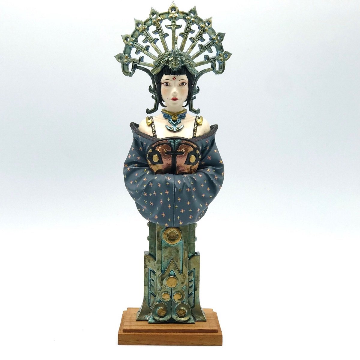コメント:金属色以外の顔や服でファレホを使用。青銅の堅さと少女のやわらかいイメージの対比が見どころ。