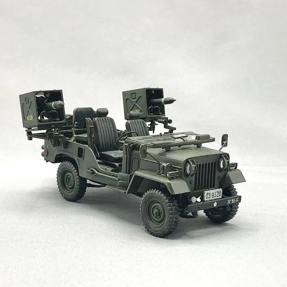 そんな狙い撃つ子がこの子です!純国産の誘導弾!64式対戦車誘導弾=通称MATが装備されているではあぁ~りませんか!特徴的な運搬用コンテナの底を開けている感じ・・・・めちゃコンパクトで日本っぽいですよねぇ~!基本的には有線で誘導をするため動きは遅め・・・・かわいらしいフォルムに!しっかり丁寧なデカール貼りお疲れ様でございます!