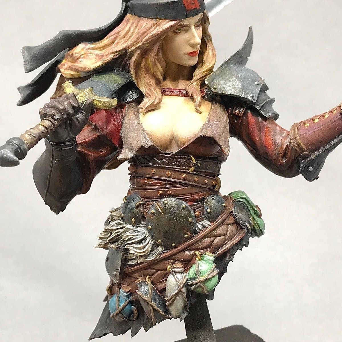 はい!いつも作品を持ってきてくださりありがとうございます!店長は結構勝手にアラディアミニチュア社を作ってくださっているイメージがついておりますが、今回は同じワールドミニズでもビッグチャイルド社より【剣鬼アラーナ (胸像)】さんの登場です!いや~、剣鬼さんは全身像と胸像と2種類あるんですがどちらもめちゃめちゃ人気なんですよね~、結構海外ミニチュアの女性は骨格からして強い印象のモデルが多いですが、アラーナさんは比較的顎もシャープで美人さんイメージが強いキットなのです!