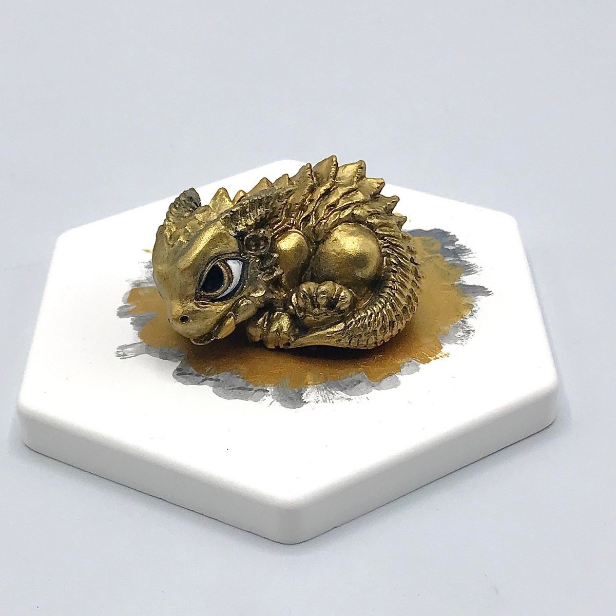 上からもみていこうね~!珪藻土コースターの何たる安定感かっ!と言う感じですが、ベースもしっかり3色表現!勢いのままにわちゃっと塗ることで、まるで金色のバケツをひっくり返したかのような勢いがあっていいですね!もちろんそのまま載せても可愛かったとは思いますが、ベースも同色で塗ることで作品にまとまりが生まれております。
