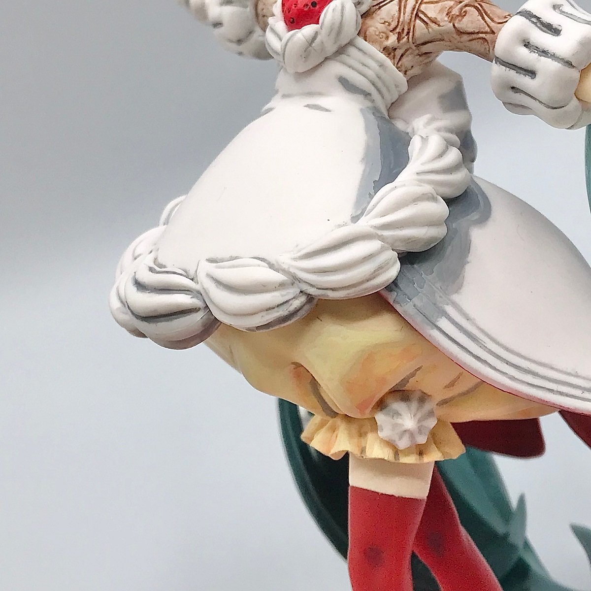 ドレス部分にも明確に強くシャドーを落とし込みことで立体感が増すのはもちろんのことですが、より色を強めにシャドーを表現してくださっていることで少しイラストチックにも見えるようになってる!またすべての造形の溝にしっかりと塗りこみをしてくださっていることで日本画で言う所の輪郭線のような印象を与えているので元のプライズよりもより印象的ですよね。