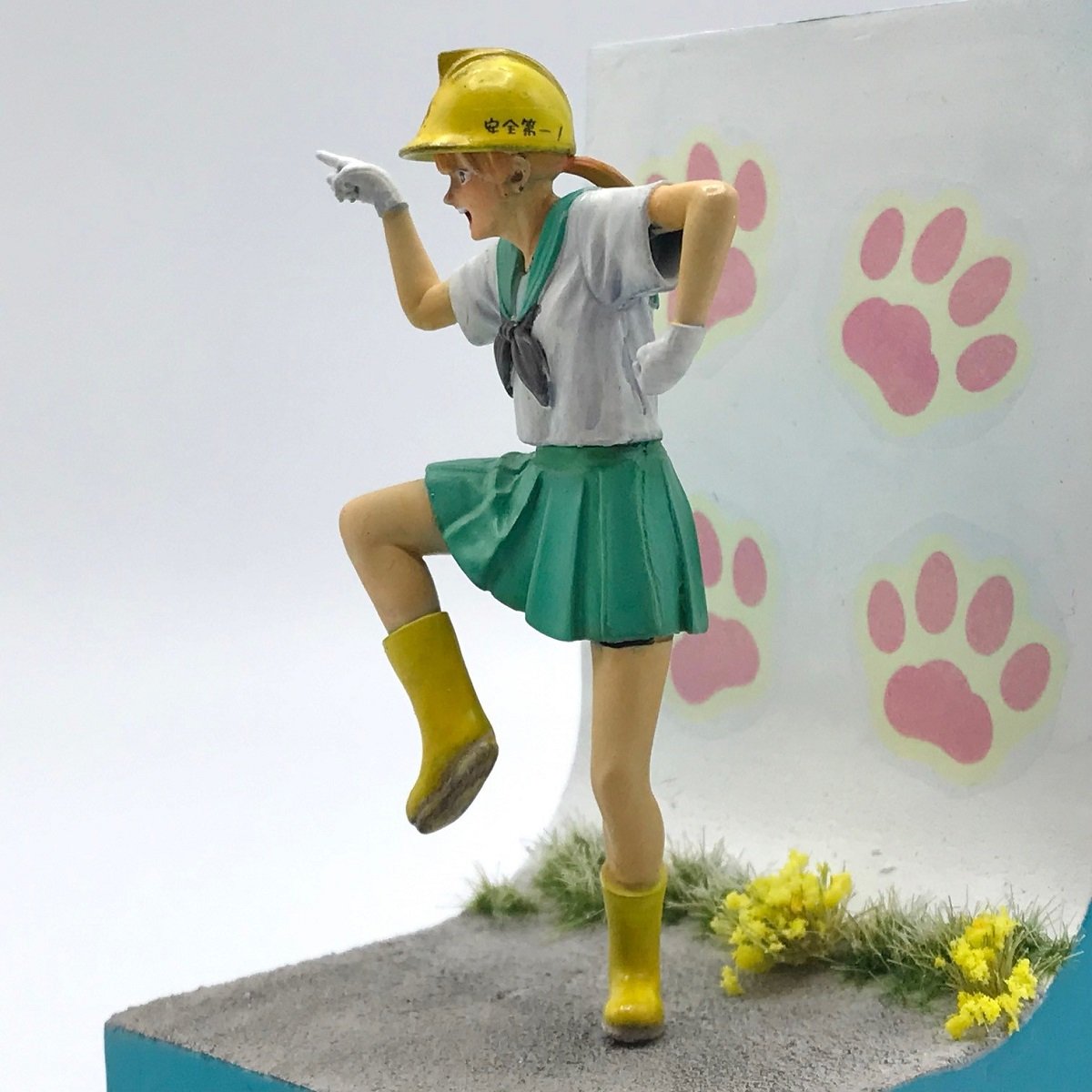 では別角度からどんっ!もう皆まで言わなくていいでしょう!何ともキレッキレの「ヨシ!!」と言う叫びが伝わって来そうですね。工事現場にいるかの如くしっかりと配色を意識してヘルメットなどを塗っているあたり・・・・流石です!制服の塗りもとても丁寧で、一色で塗り切るのではなくシャドーを施すことで小さいながらも立体感が生まれている!また指の先ほどもないセーラーカラーの首周りのラインも丁寧に塗装・・・素晴らしき集中力なのです!
