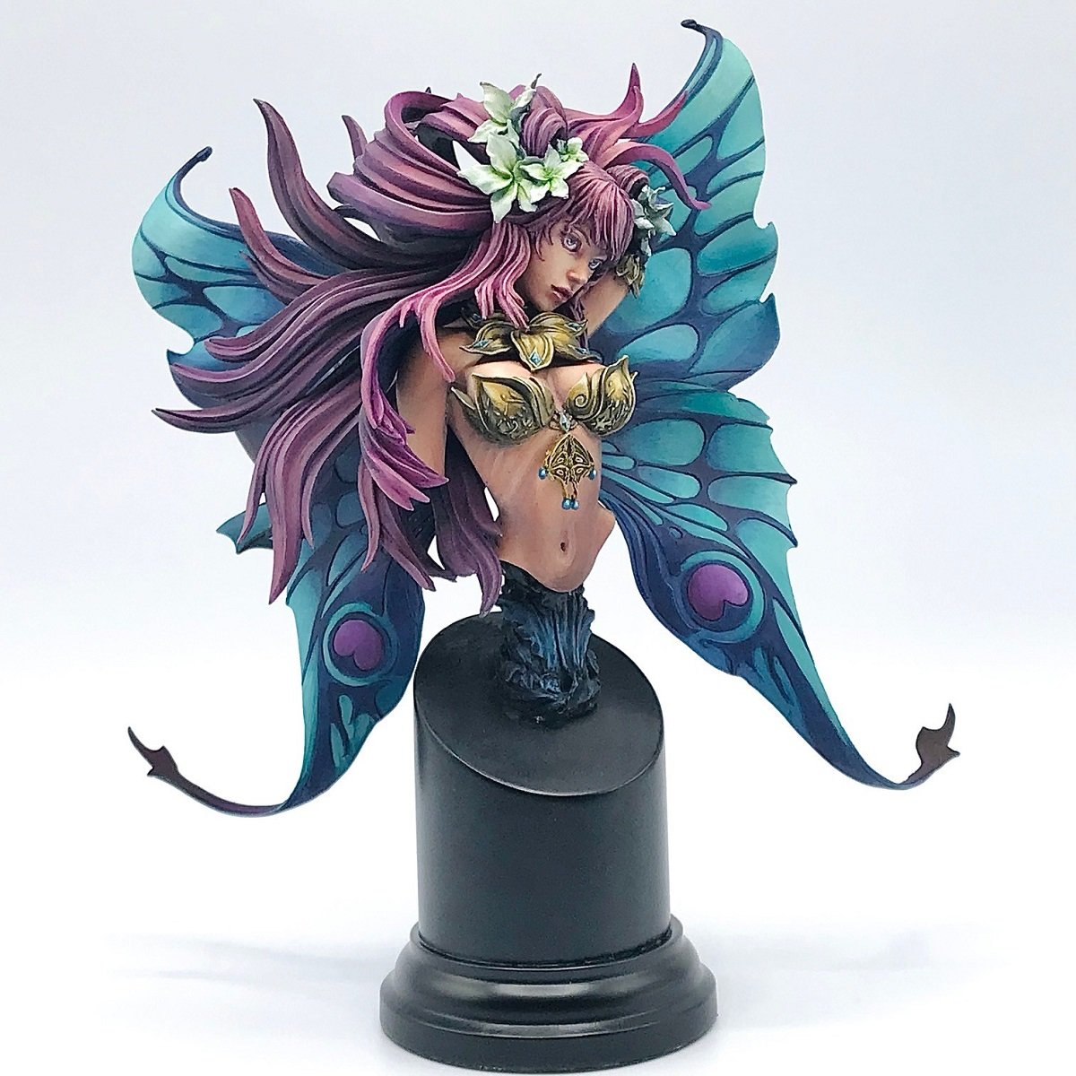 んでもって装飾品やお肌も見ていこうね!何はともあれ全てが高レベルでまとめられてますね!店長自身こちらのキットを塗ったことはないんですが、注目してほしいのは・・・・・肋骨です!妖精の少し華奢なラインを・・・造形ではなく塗で表現をされているのです!めちゃすげ~!腹筋や肋骨、腰や胸のラインまで非常にメリハリのあるボディーはold Amon様が作ったのだっ!また装飾品も流石ですよね、NMMの金もそうですが宝石の輝きまでしっかり丁寧!美しく輝いている妖精をぜひご確認ください!