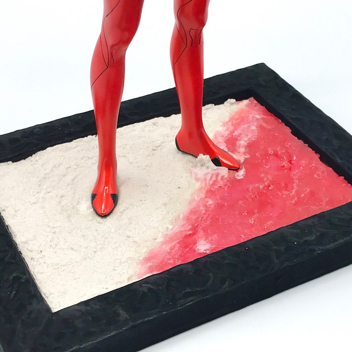 そして足元のベースにもこだわりいっぱい!LCLの海が~!海が再現されているではあぁ~りませんか!しかもノペ~ンとすることなく波の表現や波打ち際の表現までも忘れずに行ってくださっているではありませんかっ、すんばらしいですよね~。もちろんそのままでも、または何等か装飾の無いベースでももちろんいいのですが、ベースに装飾を加えることでよりキットの世界観が出てきますよね!足元にもつぶさなこだわりを見せるあたり・・・・流石ですっ!