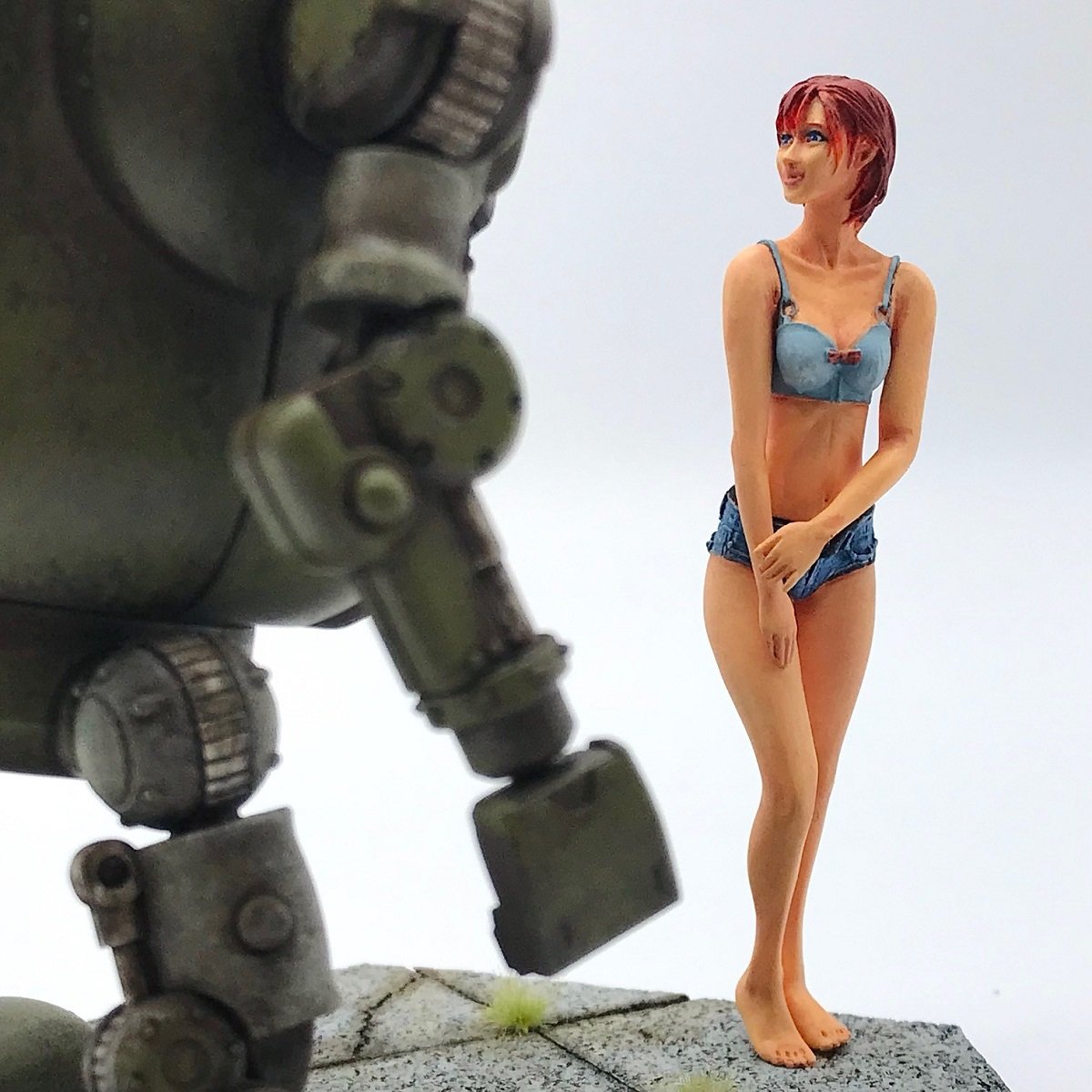 んで忘れちゃならないのがベースの塗装っ!めちゃいい感じのアスファルトっ!しかもっ、ありますよね~舗装が雑草の力で割れまくって凸凹している道路って!しかも補修のために切られてはいるが作業が一向に進んでいない道路・・・・・うんまぁ自治体様々ですからね!地面の塗装って暗くしがちですが少し明るめにすることで汚しで少し暗くなったボトム〇さんもまた健康的な女性はより健康的に見えて素敵ですね。またアスファルトの隙間に雑草を植え込んでいるのもめちゃめちゃ状況にあった理にかなった装飾がまるで本当にあった景色の様に見えてとっても素敵です!