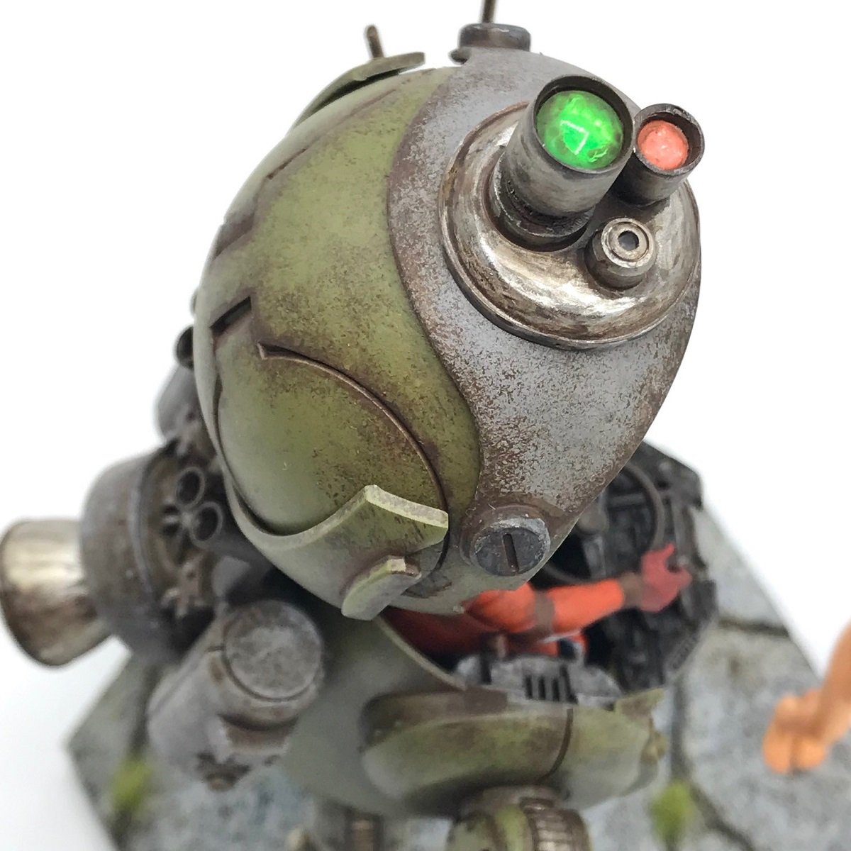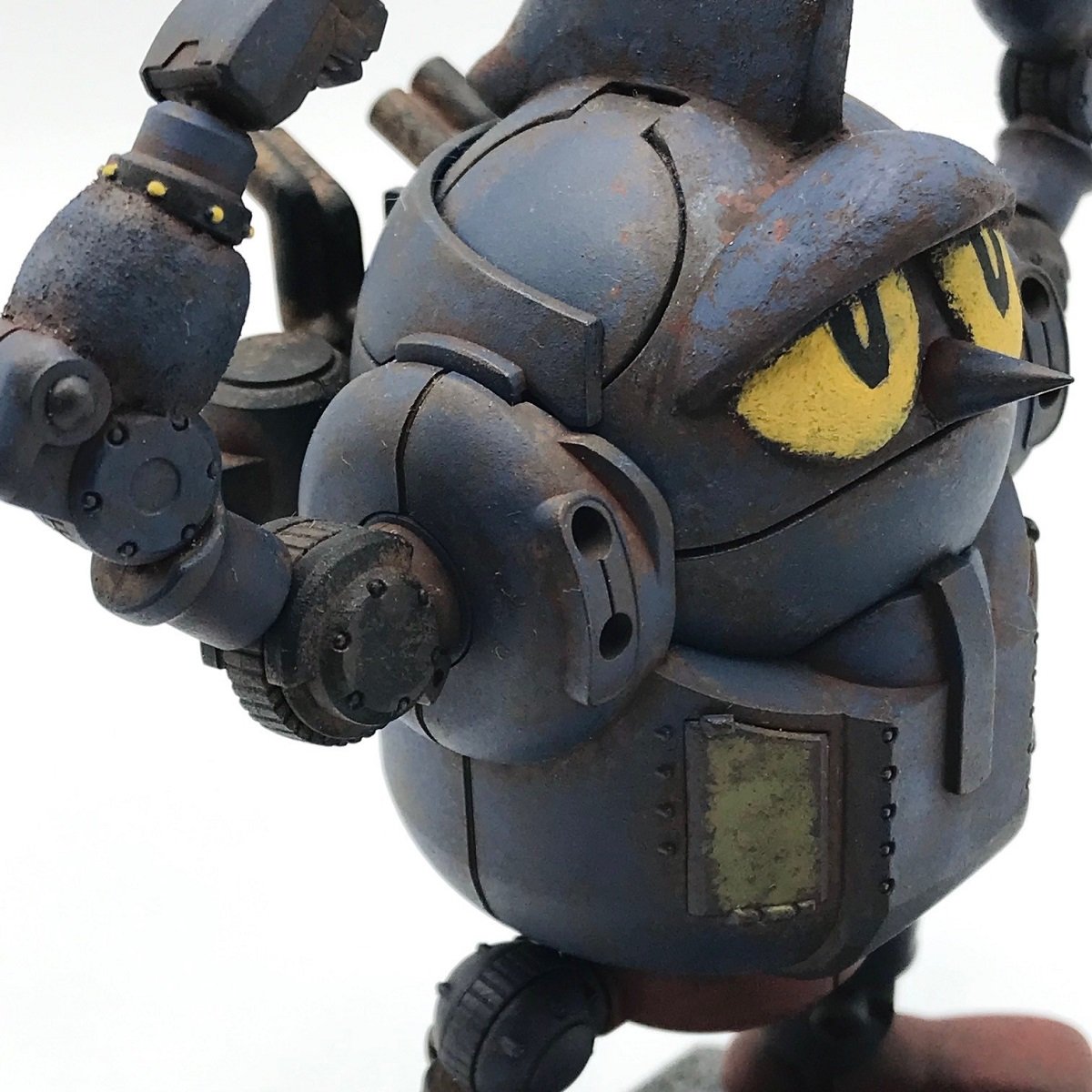 ベースもそうなんですが、やはり汚しオジサン様!汚しを見て欲しい・・・・この赤錆の表現っ!めちゃ、めちゃ上手くないですか?汚しって楽しくてめちゃめちゃやってしまいますが、やりすぎると嘘っぽくなるし、やらなさ過ぎても中途半端な印象や嘘っぽくなるのでとてもバランスが難しいんですが、黒を基調に赤錆を配置!塗装で質感や重みまで感じるほどに昇華させている塗装技術は圧巻の一言ですね。造形や元のキットがPOP調だけにリアルに塗装された金属の質感表現がとてもいいギャップとなっていて最高です。