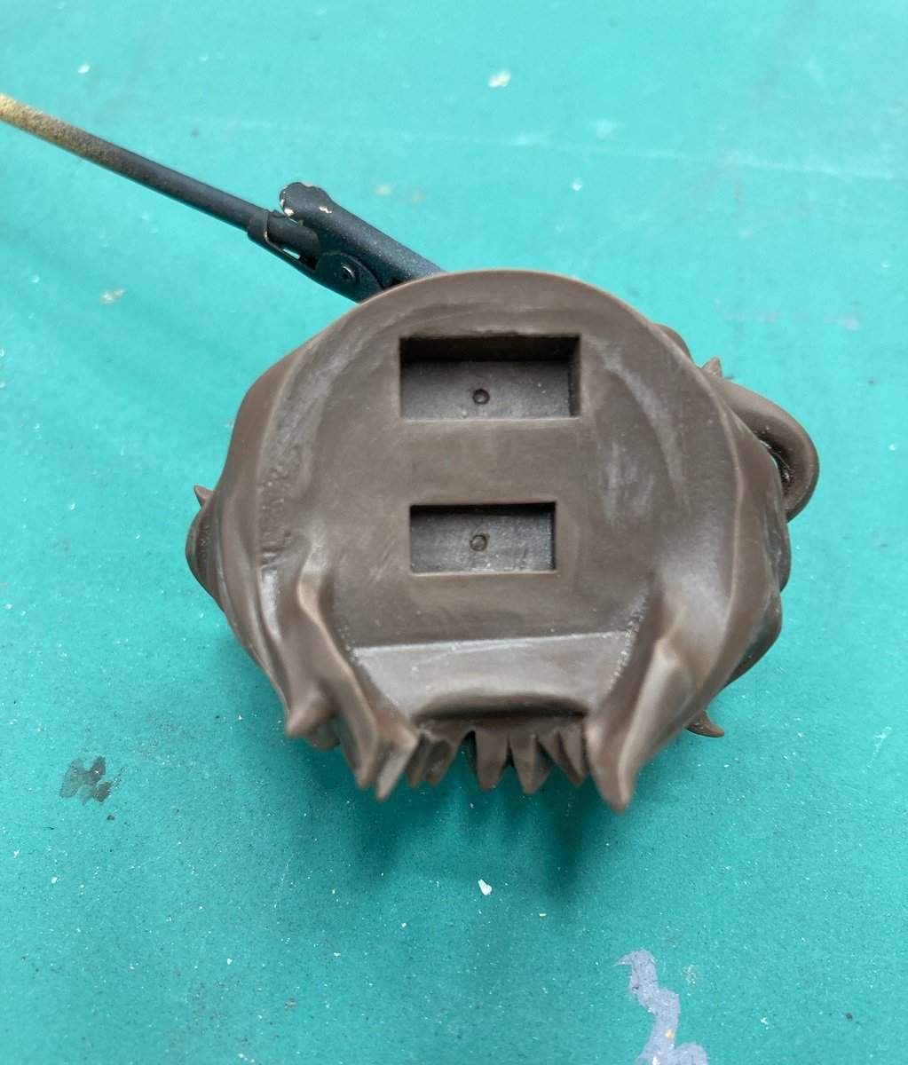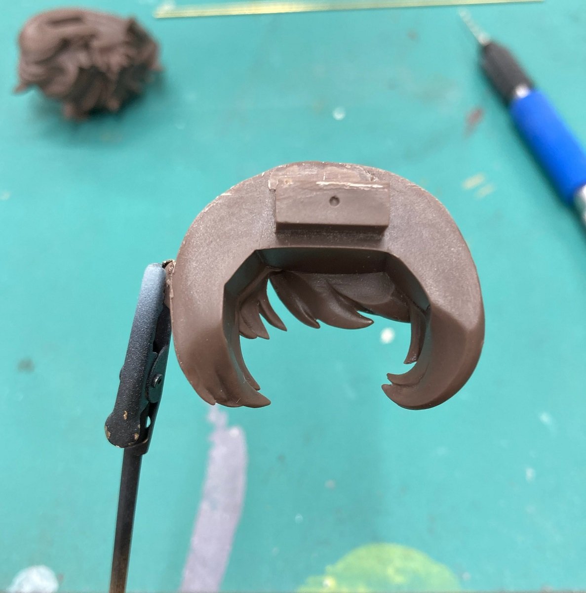 軸打ちとは、重たいパーツ同士の接続部分に真鍮線などの金属線を入れ、接続部分をより強固に接続させる工程です。