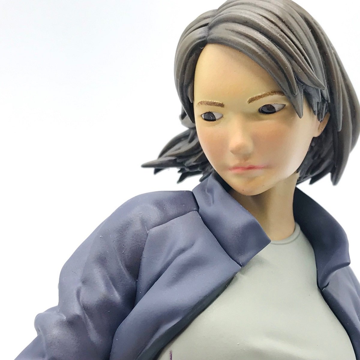 そして最後は待ちに待ったご尊顔のお時間です!いや~いかがですかっ!お顔の中にたくさんの色を感じることができますね、まつむし様が結構長い時間をかけて観察をしっかりして塗っている!と言うのがこちらまで伝わってきますよね、人の顔は赤みだけでなく様々な色が同居して初めて人として自然に見えるのですが~。目の周りや口の周り鼻下やあごなど的確に青みを指すことで何とも自然な人肌を再現しておりますっ!また眉毛も確認しましたか?1本1本描いているではないかぁ~!めちゃ根性だぁ~!そしてこのお目目~、実は入れ目だったりしますかね?造形から塗装まで何から何まで本当にありがとうございます。