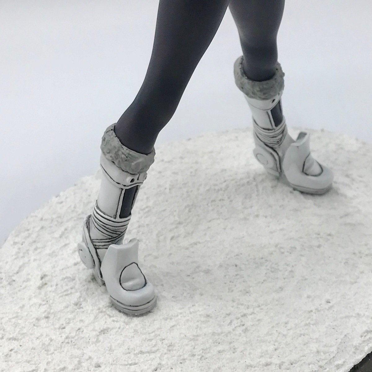 そして忘れちゃならないのはこの神経をめちゃ張り巡らせたであろうこの足元の表現ですね!使用しているは黒と白ですよ!言わずもがな正反対な色!だからこそこの塗分けが非常に大変だったことを物語ってますね!白なんて特にどんな色のベースにもなるいわばなんでも映えさせることができる色!少しの汚れも目立ってしまうという事です。しかしそこはさすがのAzuma様ですね!丁寧な塗分けでシューズを完成へと導いております!ちなみに店長はソールの色をしっかり変更しているところもめちゃ高ポイントです!さっすが~!また同じ白でもベースの雪表現の色味や艶が多少違うのでしっかりとお互いを混ぜることなく成り立っているあたりもう素敵です!