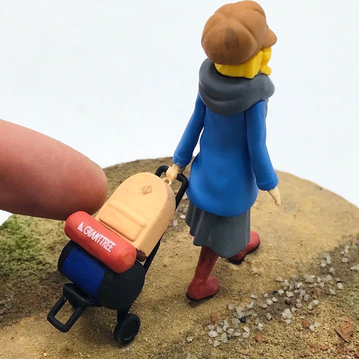 んでヴィネットとして仕上げて頂いている地面も見ていこうね!こんな小さな範囲の中に様々な大きさや色の素材を使用して、服装にあった少しばかり寒い秋から冬くらいかなぁ~と言った季節感が出ていますよね~!個人的には左右に散らされた小さな小石がめちゃめちゃサイズ感もあっていいバランスを出していると思うのです!塗りの丁寧さやバランス感覚がめちゃいい作品!最高です~!