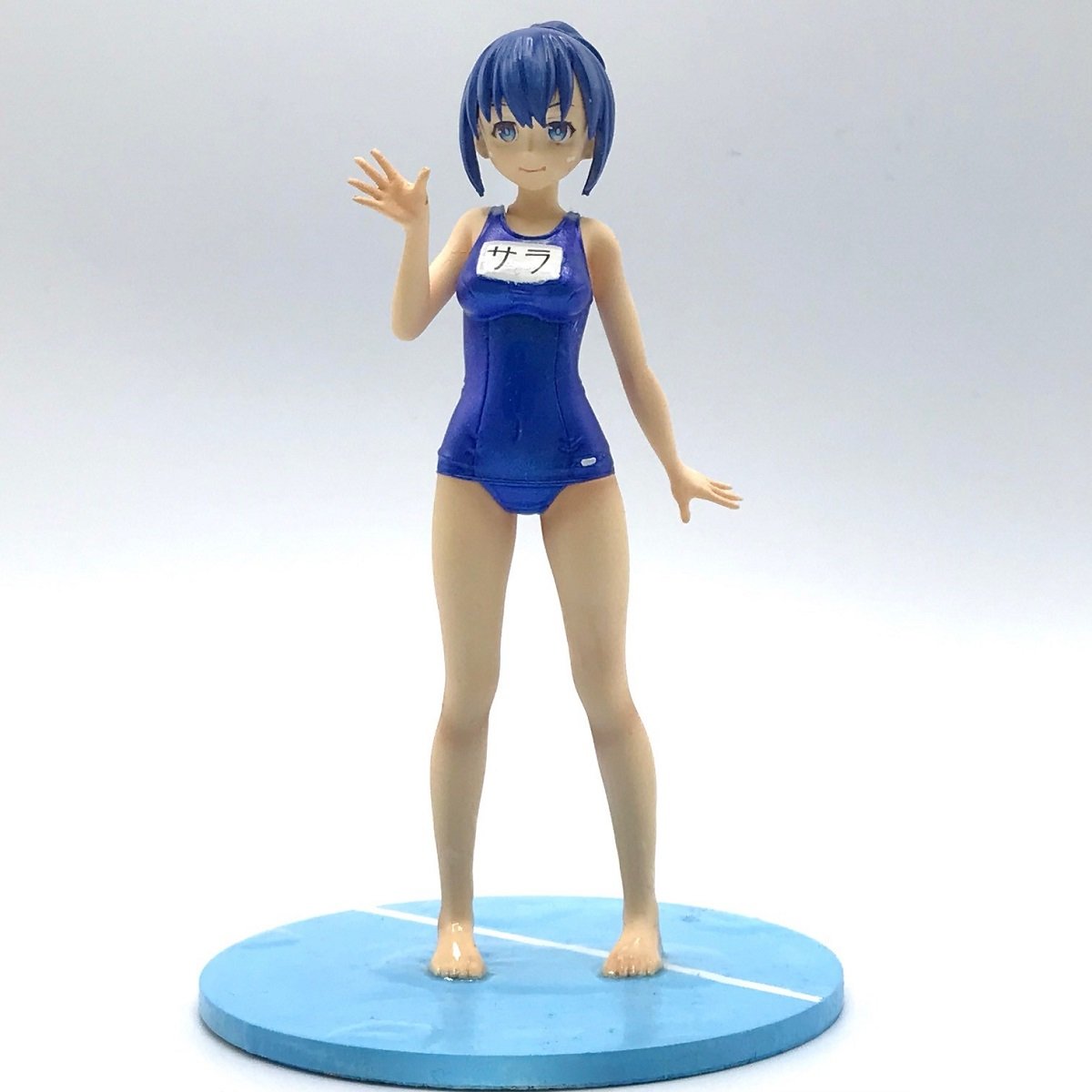 という事で見ていきましょうか!正面アップからどうぞ!という事で髪色とマッチングしている青い色が何ともさわやかですよね!瞳とネームプレート?はデカールが付属しておりますがしっかりとした位置決めが光りますね!また皆様よ~く見てくださいね!よ~くね!この水着・・・きらきら光っているんですぜっ!スクール水着の素材ってなんだか光ってましたよねすんごいこだわりだ!