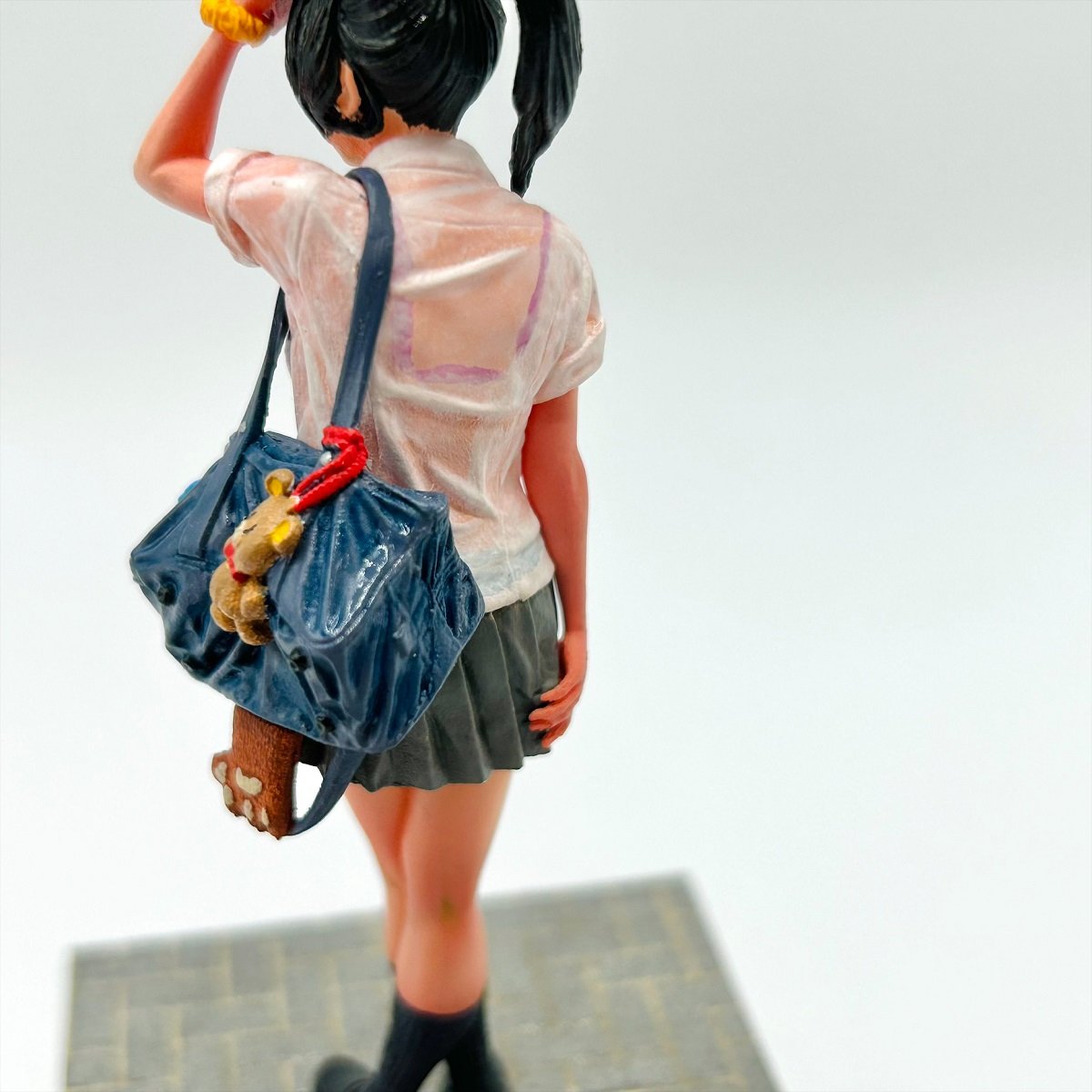 という事でまずは後ろから見ていきましょうね!急な夕立!今であればゲリラな豪雨ですね。傘を忘れてとっさに降られた感じの一コマ・・・・服は着ているもののお肌にぴちっとついてしまったワイシャツにお肌が透けてしまっている・・・・結構多くの男子諸君が想像をしていたであろうシチュエーションですがぁ~!言うのは簡単ですが塗るのはめちゃ難しいですよね!それこそ透け感や下地の色!むしろ下地と言うか塗分けがめちゃ難しい!