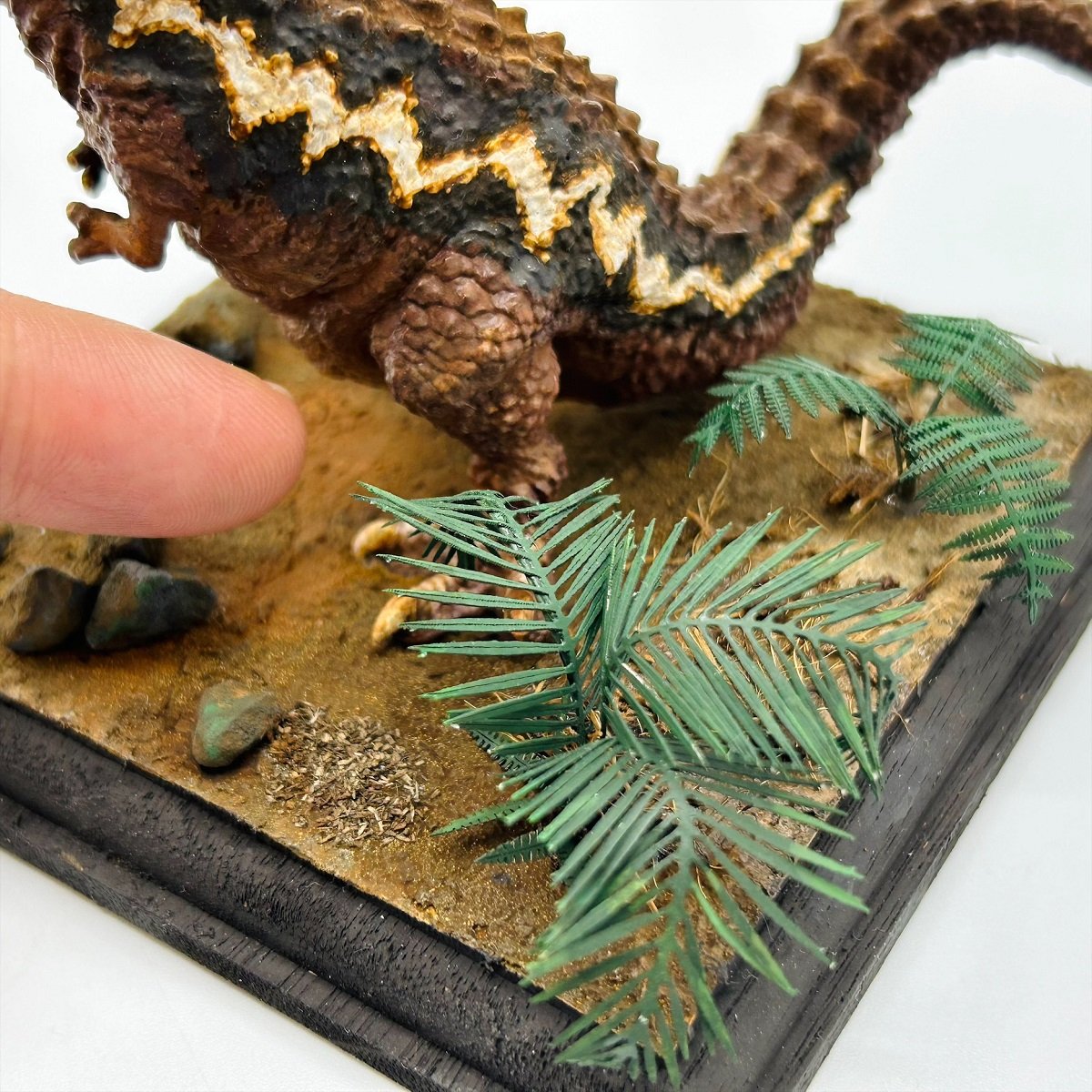 ベースもしっかり!とても良き!小さいキットですがこの迫力を維持するのはやはりベースの存在感も不可欠なのだ!という事でベースを見ていきましょうね。土や石を転がすだけでなく、植物もしっかりと配置することでベースにみずみずしさが生まれてきますよね~!また植物の大きさも1つでなく複数使う事でランダム感と言うか自然感が生まれてめちゃ良いのです!しかして指と比べてもこの線の細さと小ささよね、カールなど調整されたと思うのですが・・・・小さい中に様々なこだわり!ありがとうございます。
