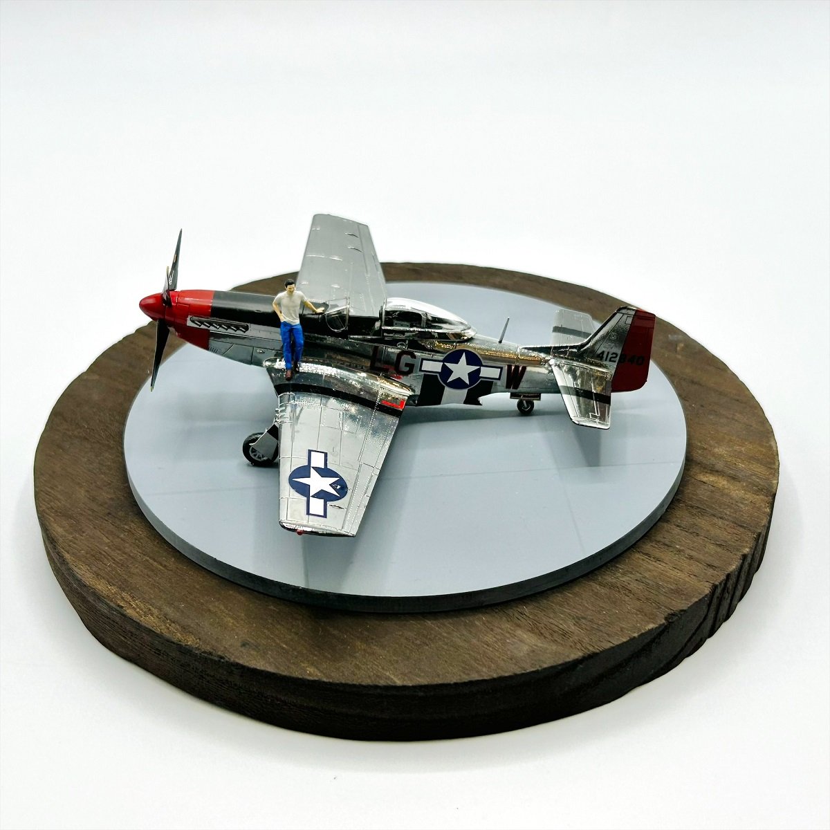 では続いての映画は・・・・じゃなかった!続いての作品はっ、当店舗スタッフも何名かドはまりして何度も映画館に足を運んでいた映画に登場する飛行機さん!『メーカー 1/72 P-51マスタング』さんですね~!なんの映画か言及されておりませんがこんな光輝くP-51はもぅあのP-51しか思い浮かべることができなのですよ!レディガガの曲を流しつつ夕陽を思い描いてみていこうではありませんかっ!