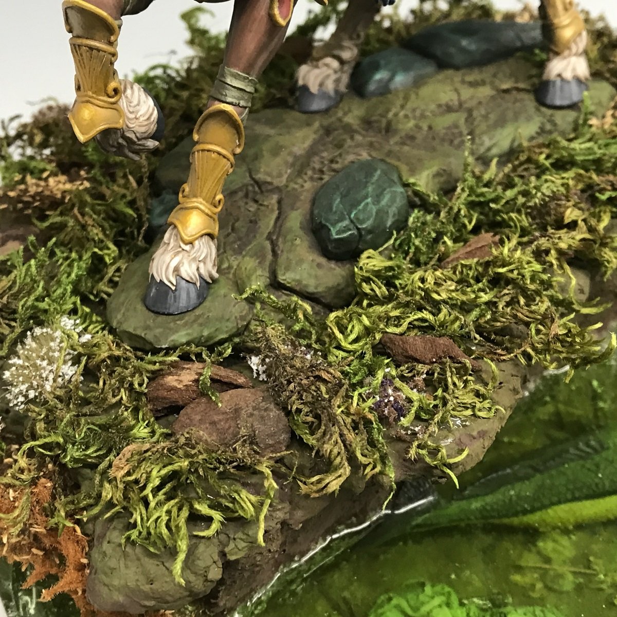 もっと近づいてみるとよりわかりやすいのですが、目や髪のように蠢く蛇たちの塗りなど、本当に難しいところまでキッチリと描かれており、担当としましては高い技術力が伺えるポイントかとっ!また、足元に添えられるように緑の中に咲く赤いバラがいいアクセントとなっており、蛇神の全体的な神聖さも際立って感じられ、さすがというほかありませんね!!
