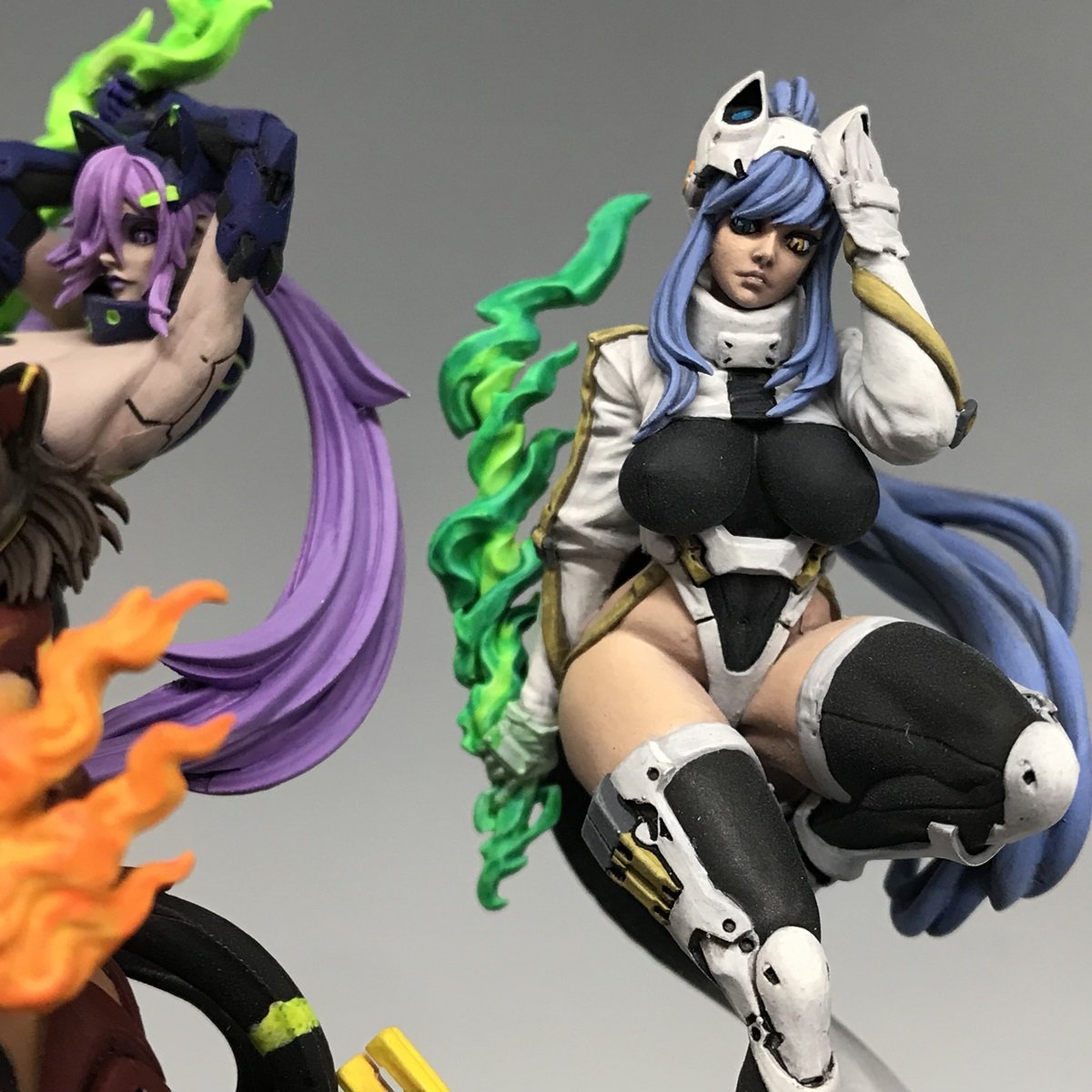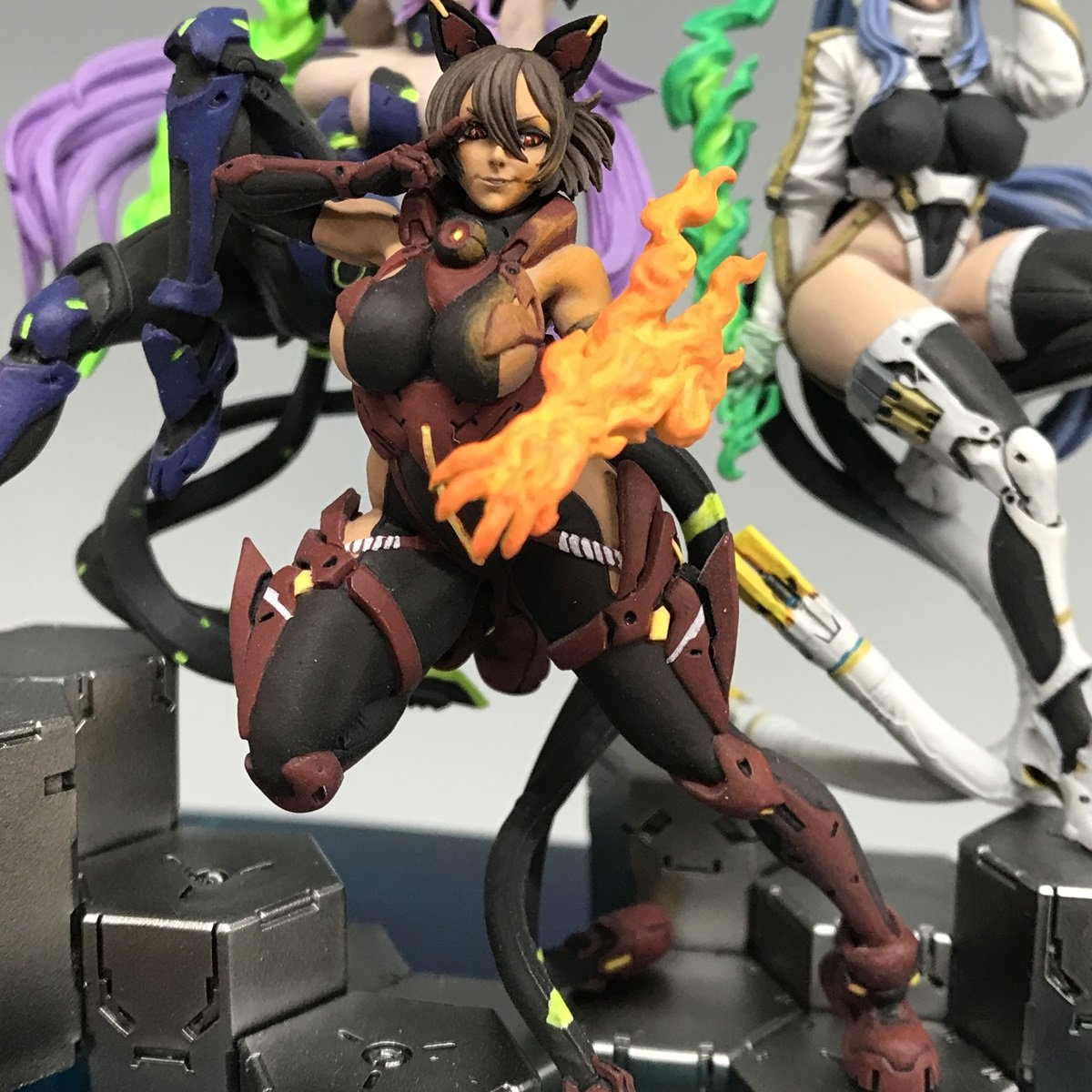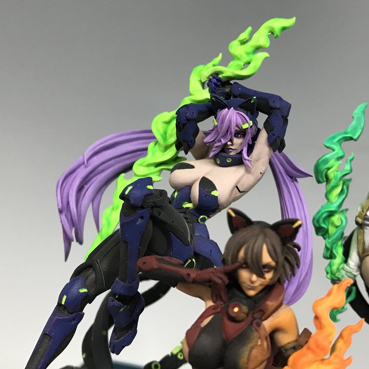 最後となるbell様の作品その④はSF感あふれる美女ミニチュアを多くラインナップしており、当店でも大人気メーカー リンボディビジョン209より最近発売されたばっかりの【エンバー(75mm)】、【ルナ(75mm)】、【ヴェスパー(75mm)】を使用しており、イラストに準じたパキッとしたカラーリングで塗られた華やかさのある作品ですね!!