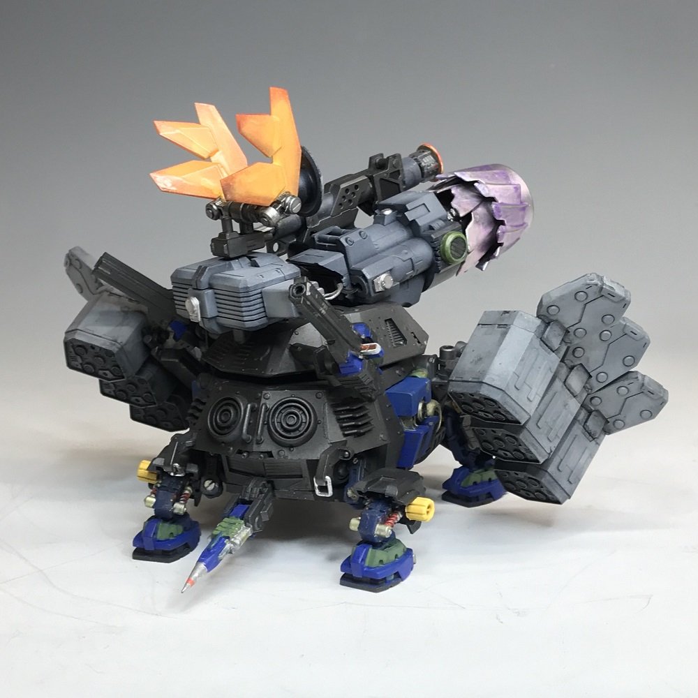 何と初ファレホ作品ですと!しかもエアブラシと筆塗併用だなんて・・・なんて素晴らしいのかしら!いつの間にか沢山のゾイドの参加をして下さるようになりうれしい店長&担当です!という事でスピードはないが火力は最強だぜ!と言わんばかりの装備品たちですがそれぞれしっかりと塗分けされているだけでなく、部分的にグラデーションなども活用!仕上げに行われた汚しが歴戦の猛者感を出しててメチャ素敵です。