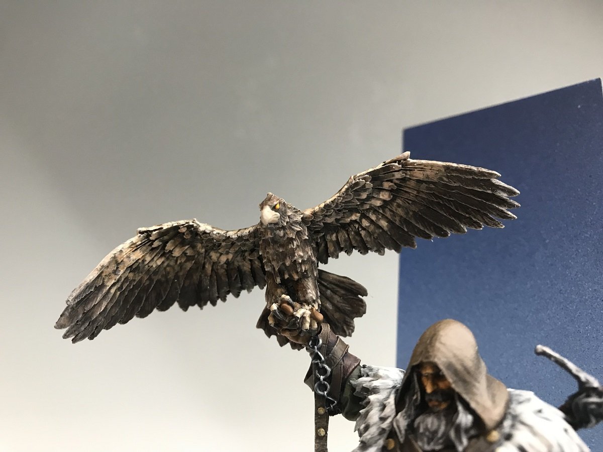 もう一人の主人公とも言える鷹の塗装も、羽の模様の描き込みが素晴らしい!