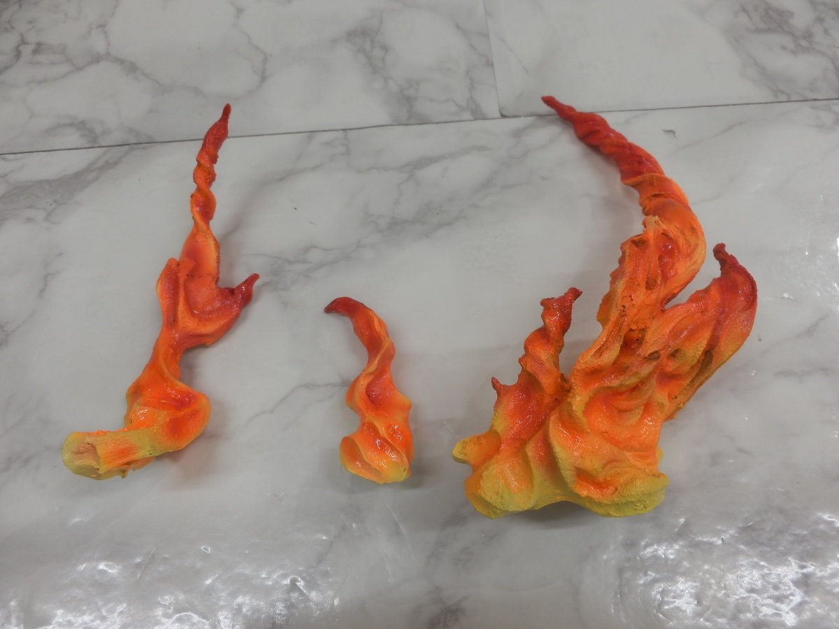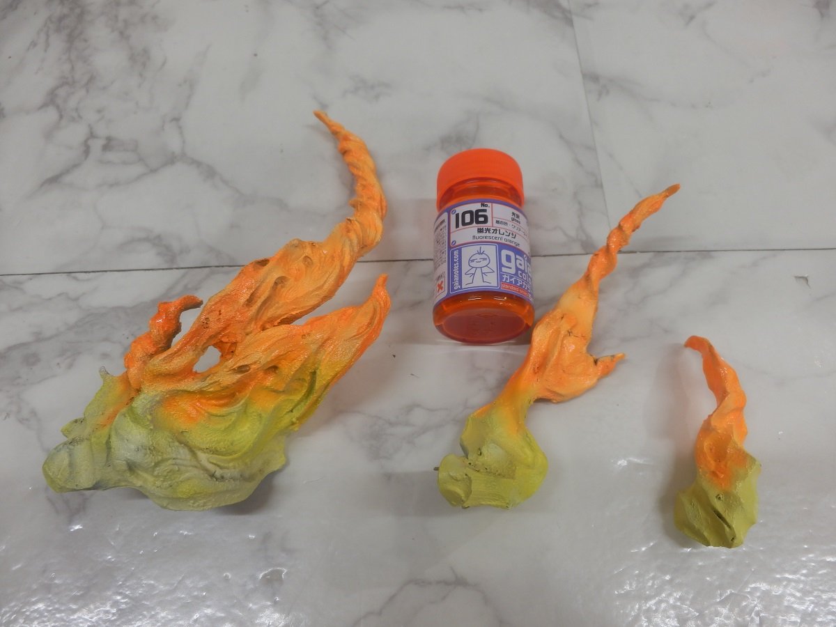 塗る方のイメージによって、炎の基本色を様々に対応できるように最初は「黒っぽいカラーレジン」で成形されています。