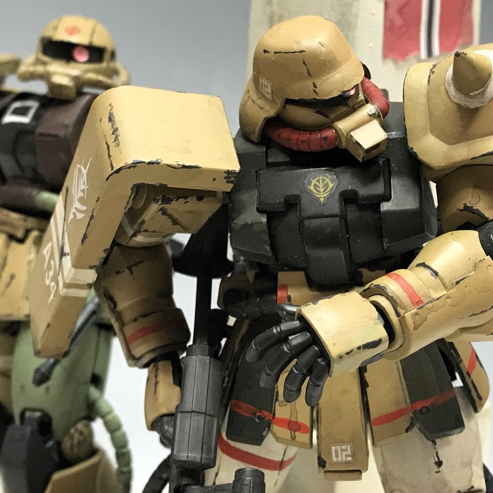 そして奥のザクは左足の一部が通常のグリーンカラーに!修理パーツのようにも見え、世界観にストーリー性を加えてくれています!!