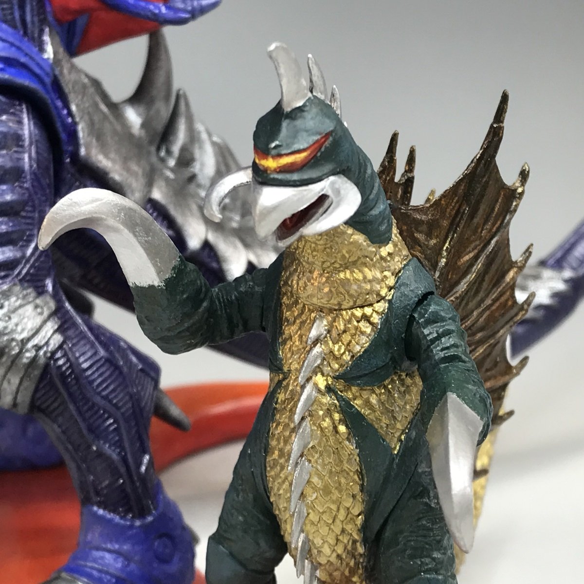 改造前の宇宙恐竜(notゼットン)を彷彿させる青銅色に近いボディや金色の鱗部分を生物感が出るように塗装されています!