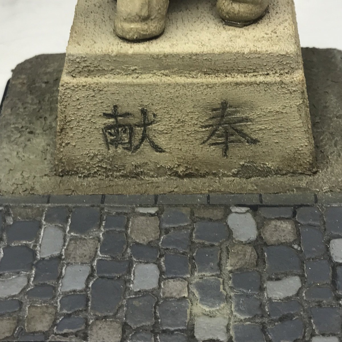 奉献と描かれている台座や地面にも細かな塗装が施されており、台座に陰りがある部分や石畳の白っくなっている部分など、年季の入った石を見事に表現されていますね!