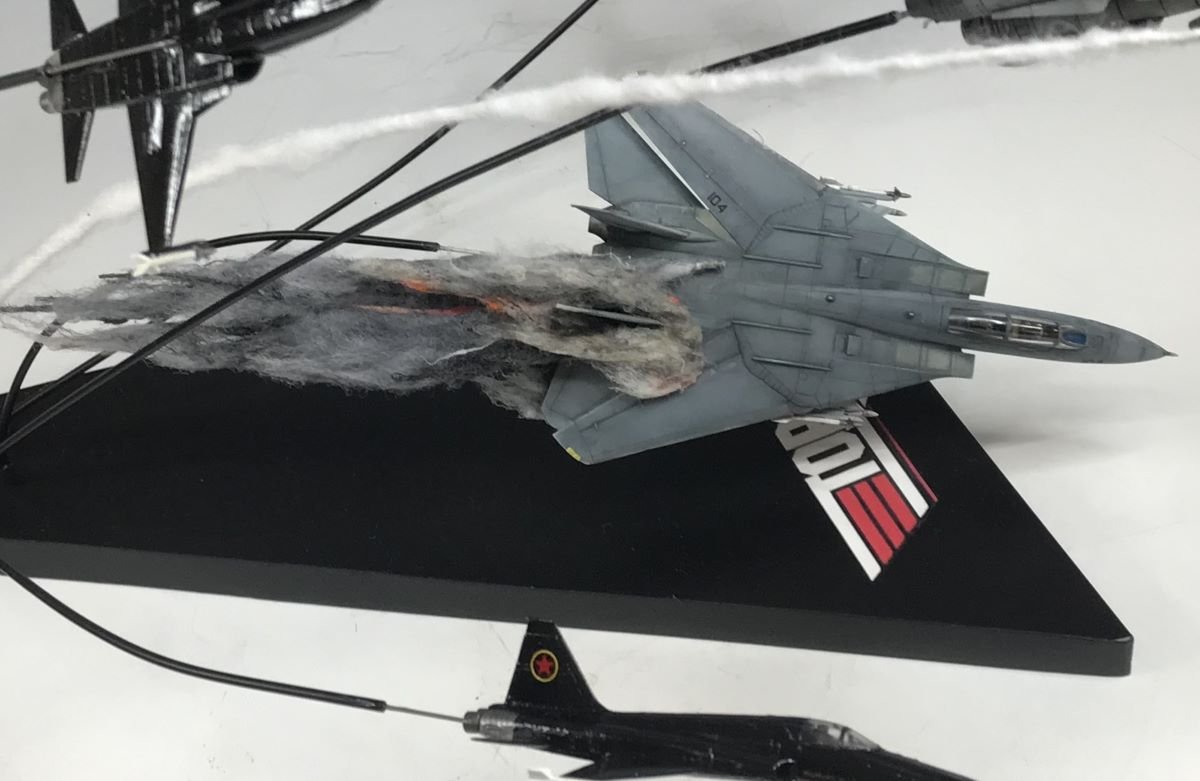 コメント:劇中の空戦機動の雰囲気を再現。F14はファレホで基本塗装後、エクスプレスカラーで色に深みを加えています。