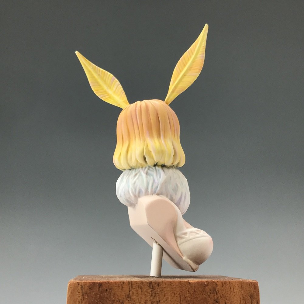 凄いわぁ~!なんという緻密っ、なんという手先の器用さ!そしてなんというブラシコントロール何でしょうかっ!胸像としては比較的に小さめお手頃サイズでおなじみの左手工房さんのキットですね~、造形をされる方も何名かいて様々な胸像を楽しめるのでオススメ!そして今回は蛾嬢さんですね、色味が黄色ので先入観的に女王バチにも見える今日この頃、お肌の質感はもちろんですがなんといっても瞳の描き込み、そしてまつ毛の植毛の緻密さったら半端ないですね、粘膜塗装もバッチリの目地から強めの塗装は目が離せなくなっちゃいますよね!すんばらしい。