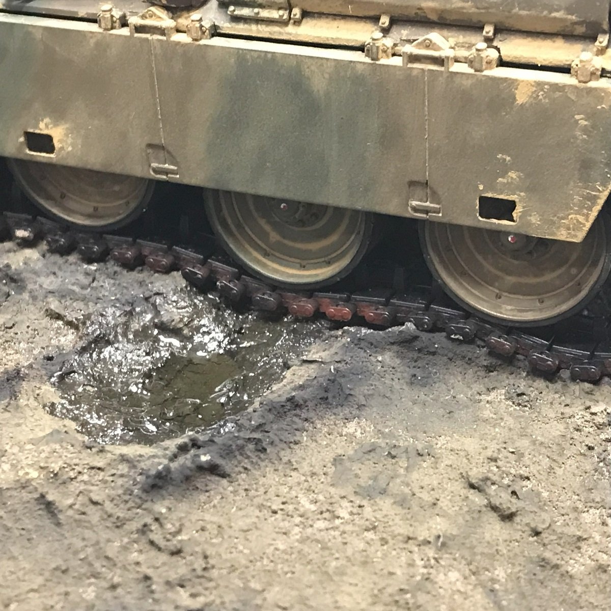 一体どんなファンタジー生物と対峙している場面なのでしょうか?。履帯痕も残る、このぬかるんだ地面をを駆け抜ける戦車の臨場感。泥はね、土煙をものともせずに進んでいく、力強さを感じる作品です。
