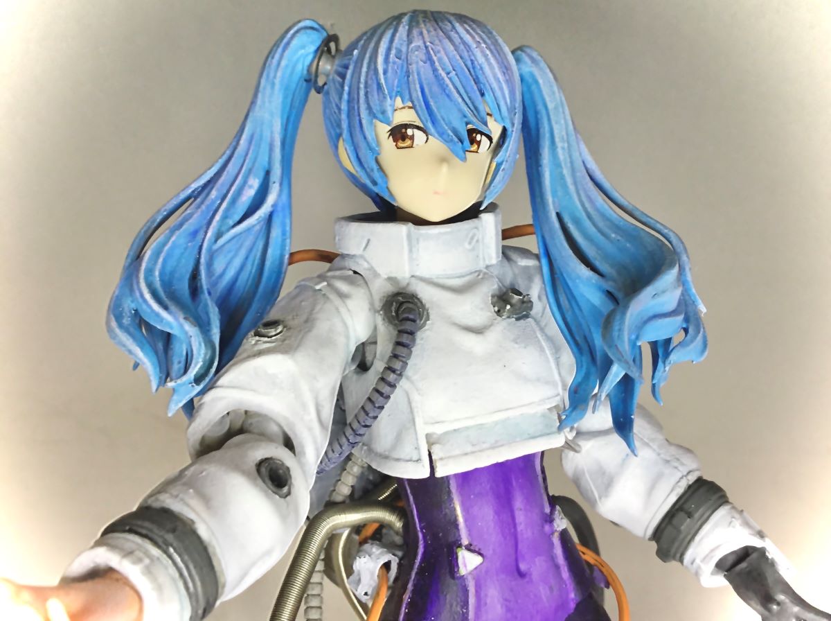 まずは上半身から。髪の毛がですがハイライト強めで、薄っすらパープルを上掛けすることで、宇宙空間ならではの強い光と空間の冷たさが伝わってきます。この表現方法は流石の一言です!