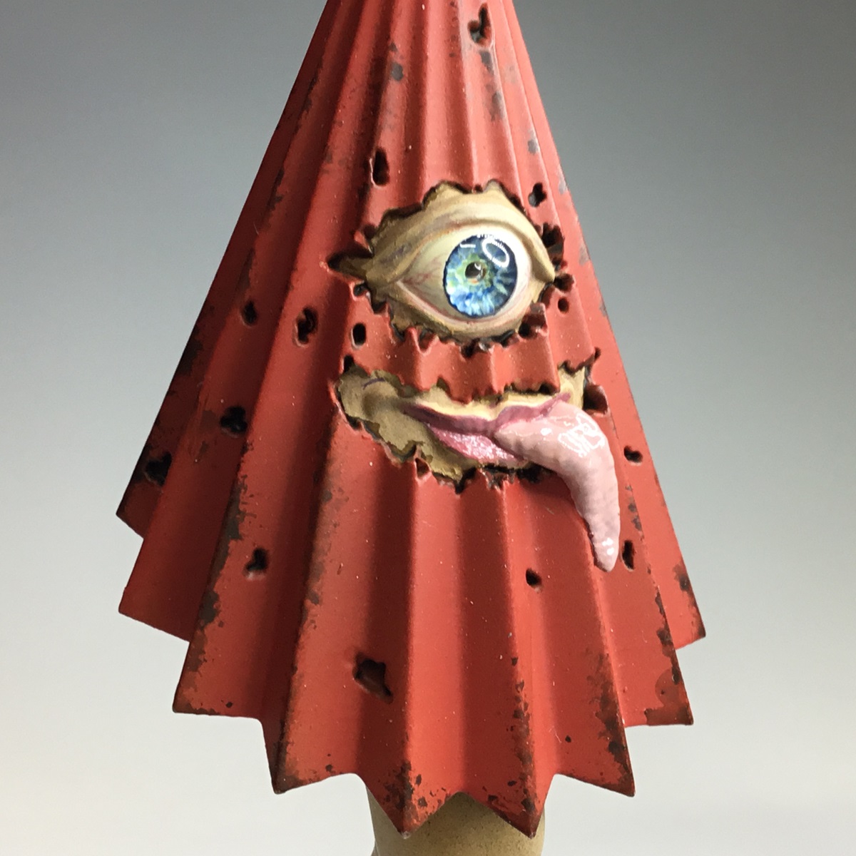 ボロボロの傘から覗く、アイデンティティであるパッチリとした眼。