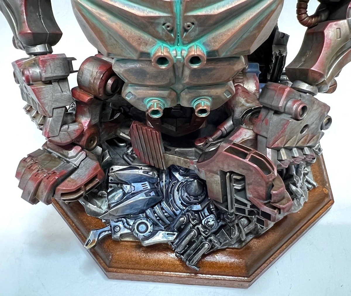■制作者コメント:動かなくなって長い年月が経過したようだ・・・塗装で錆の緑青を再現しました!台座はジャンクパーツと100均のディスプレイベースを使用して廃墟っぽくしました。