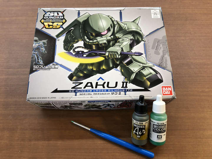 こちらの「SDCSザク」をファレホを使ってドライブラシ塗装をメインに仕上げていきます。