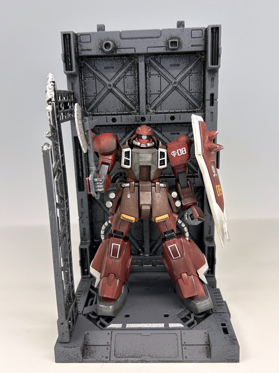塗装により強調されたザク本体とステージの重厚感がカッコいいですね!