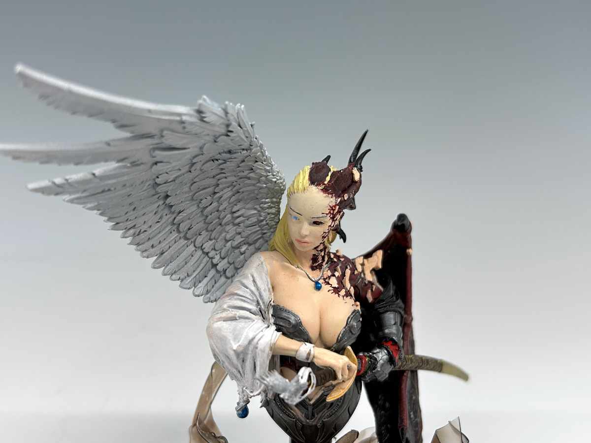 製作者コメント: 羽と土台の炎以外はファレホを使用しています。悪魔の方はモンハンのリオレウス装備をイメージしました。羽にガンダムマーカーのホロ塗料を使ってみました。