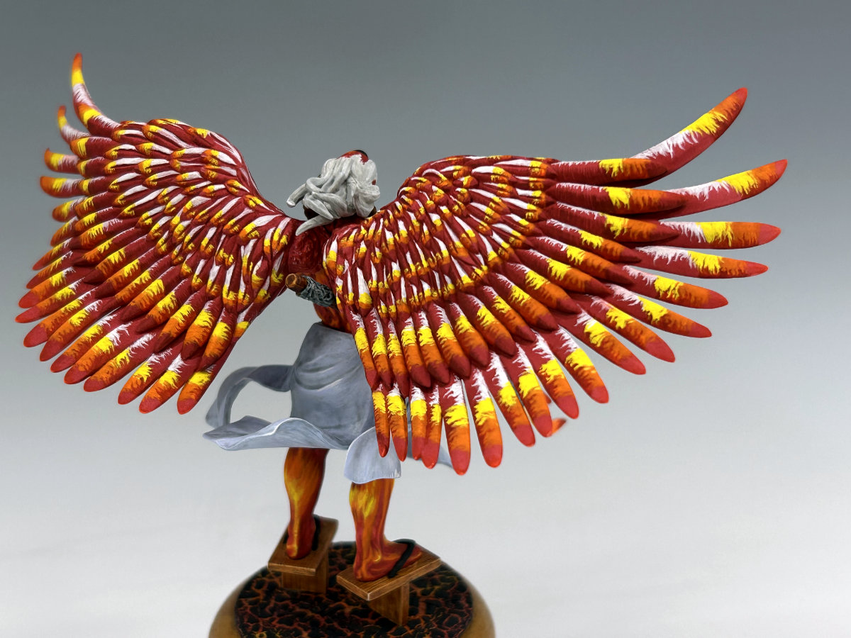 製作者コメント: 台座や一部の装飾を除いてですが、全体的にファレホを使用。炎属性の感じがでるように意識して塗りました。お気に入りの自作した下駄にもエクスプレスカラーを使用してます。