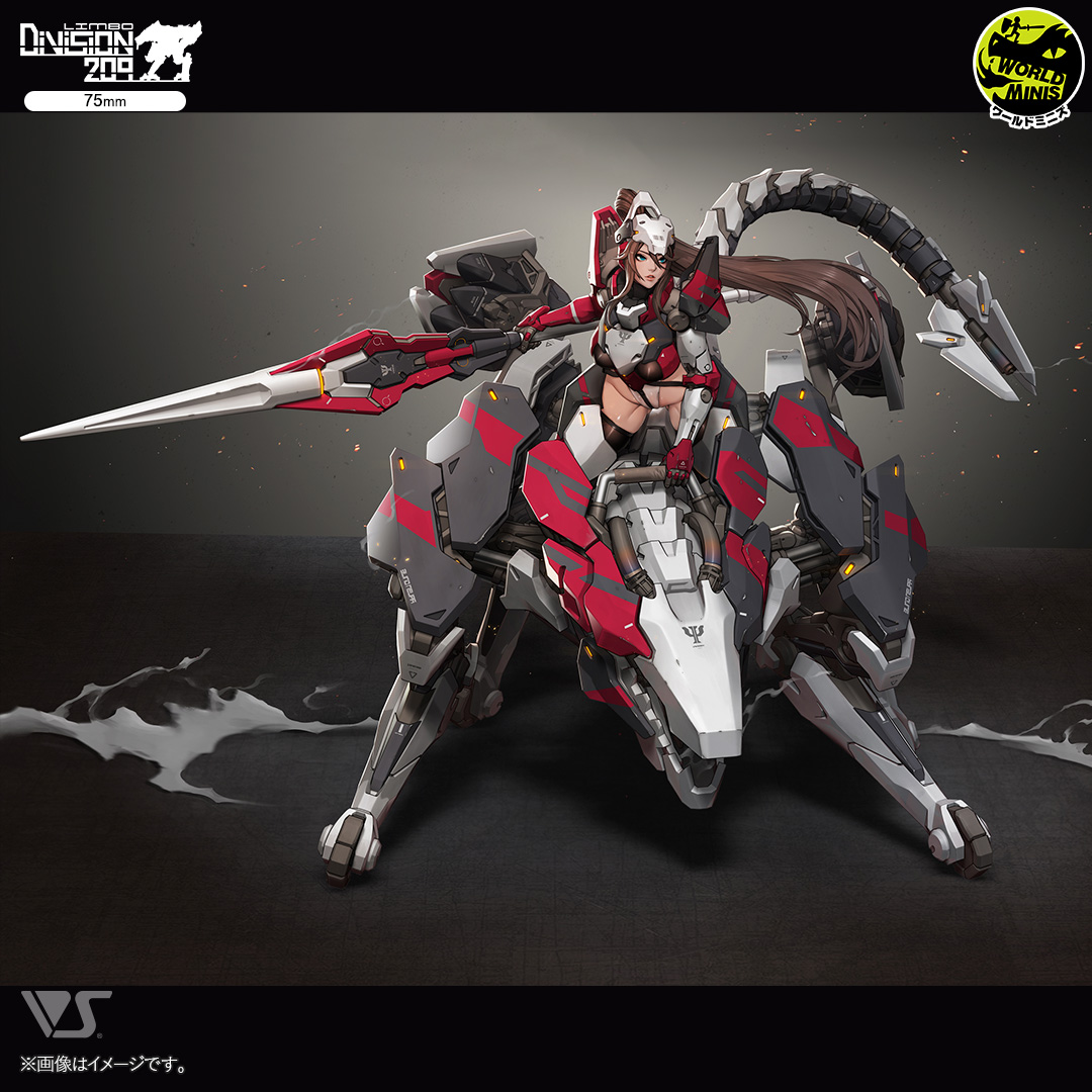 彼女の駆る大型の4脚マシンの造形も非常に魅力的で、「リンボディビジョン209」社の得意とする「美少女×メカ造形」を存分に味わってください!