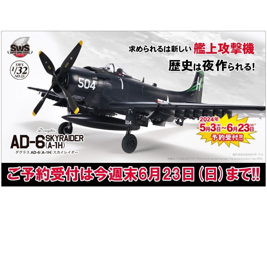 ご予約受付は今週末6/23(日)まで!SWS「1/32 ダグラス AD-6(A-1H)スカイレイダー」好評ご予約受付中!