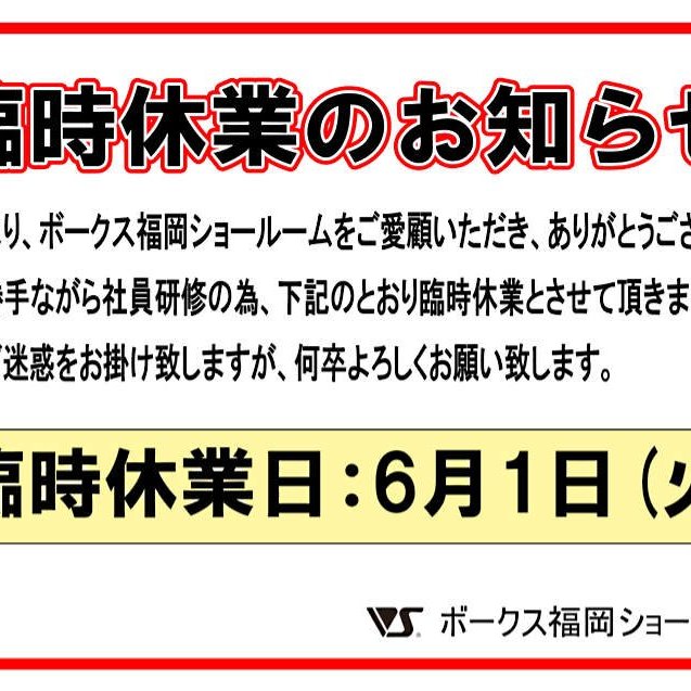 6月1日(木)福岡ショールーム臨時休業のお知らせ
