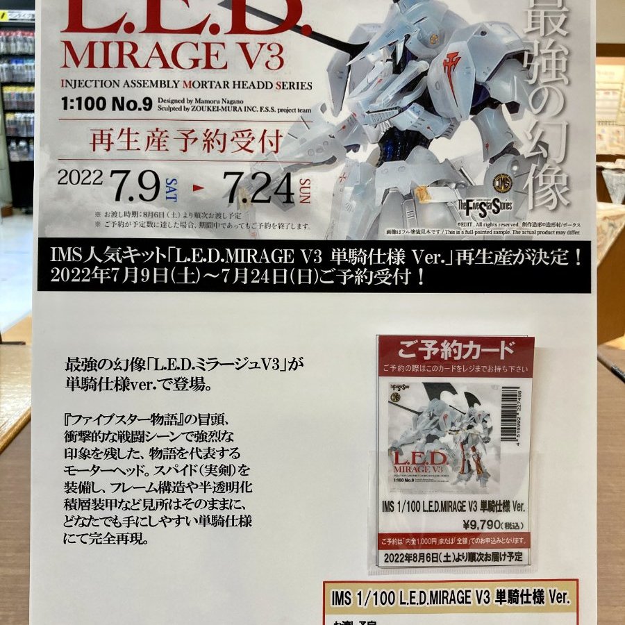 最強の幻像「IMS 1/100 L.E.D.MIRAGE V3 単騎仕様」再生産、明日7/9(土)よりご予約受付開始&VHF14発行のお知らせ!