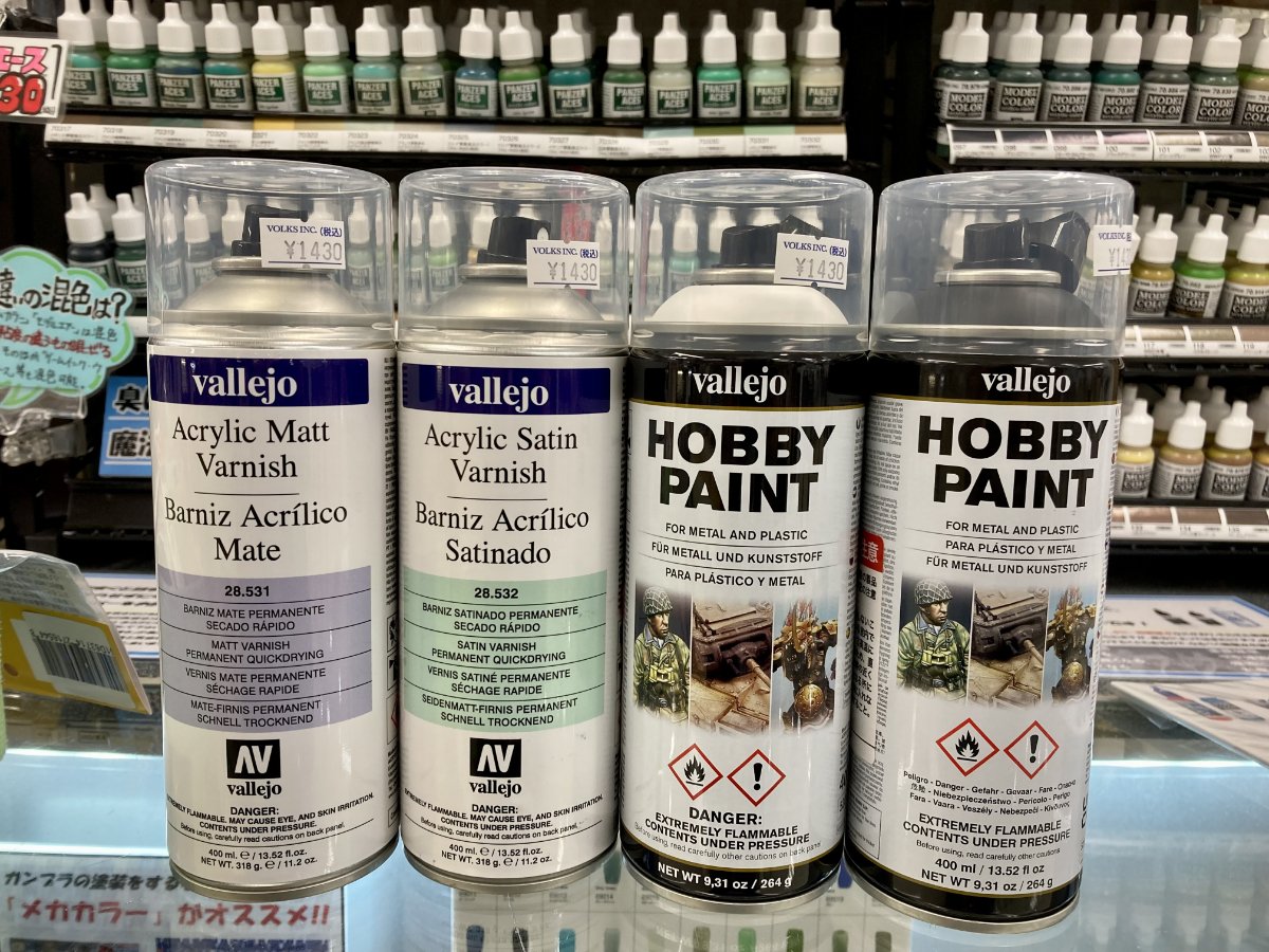 長らく品切れが続いておりました「ファレホ ホビーペイントスプレー」の「ホワイト」と「ブラック」、クリアコート剤の「マット(つや消し)」と「サテン(半光沢)」がようやく再入荷いたしました!