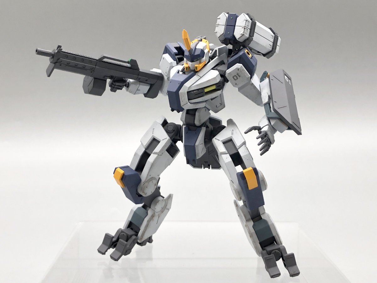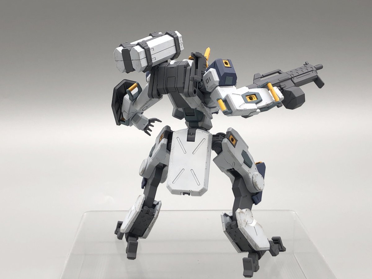 本体色のブルーにこだわり、全体を合わせたと仰っておりウェザリングに使ったファレホも境界戦機の泥臭さが出てますね!
