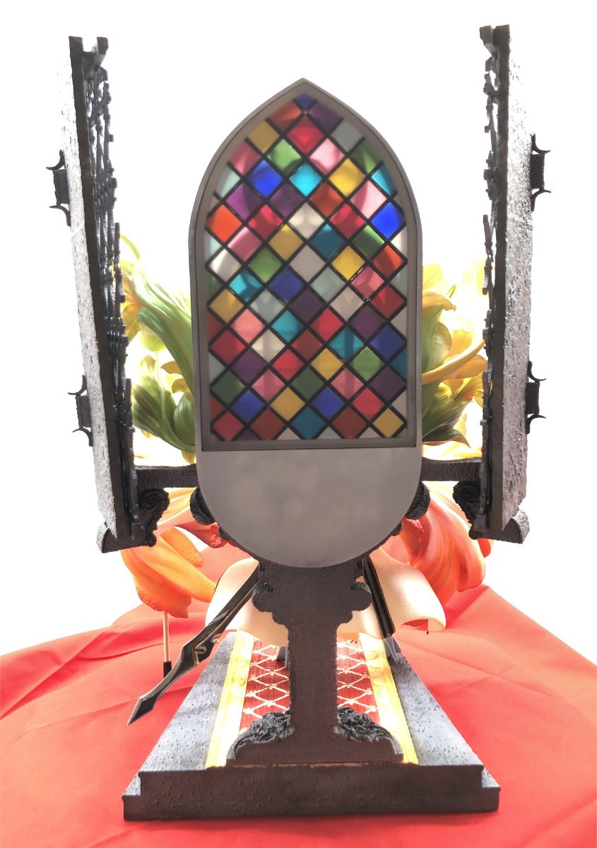 瞳のペイントに時間をかけたと仰っていた通り、イラストの様な仕上がりでとても美しいです。花や装飾に至るまで丁寧に塗装されていてうしろのステンドグラスも光で透ける様に薄く塗装している所にも工程の大変さを感じます!
