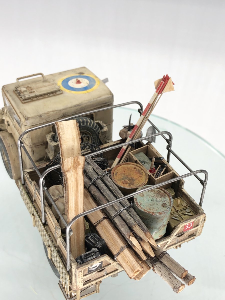初めてのファレホとの事でウェザリングに使ってくださったとの事で使い勝手が良かったと仰っていただけております!!車体の汚し具合や積載されている小物類などの塗装が凄い‥ドラム缶のサビ表現なんかは本物にしか見えません‥中のドライバーもしっかりと塗られて隙がないです‥
