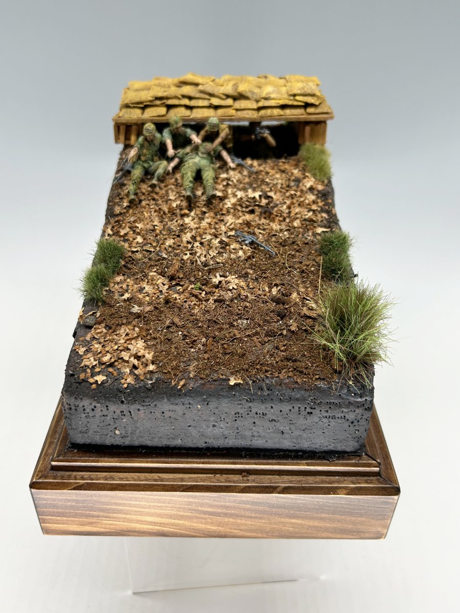 兵士1人1人にしっかりと動きと表情があり、散らばったM16や負傷兵を引き込む姿が息をのみます・・こちらは完成前の写真から見せて頂いていましたので作品に対するこだわりがヒシヒシと伝わりますね!!