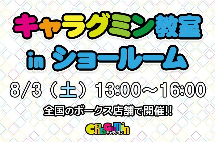 参加資格は教室当日広島ショールームにキャラグミンをお持ちいただくだけ!